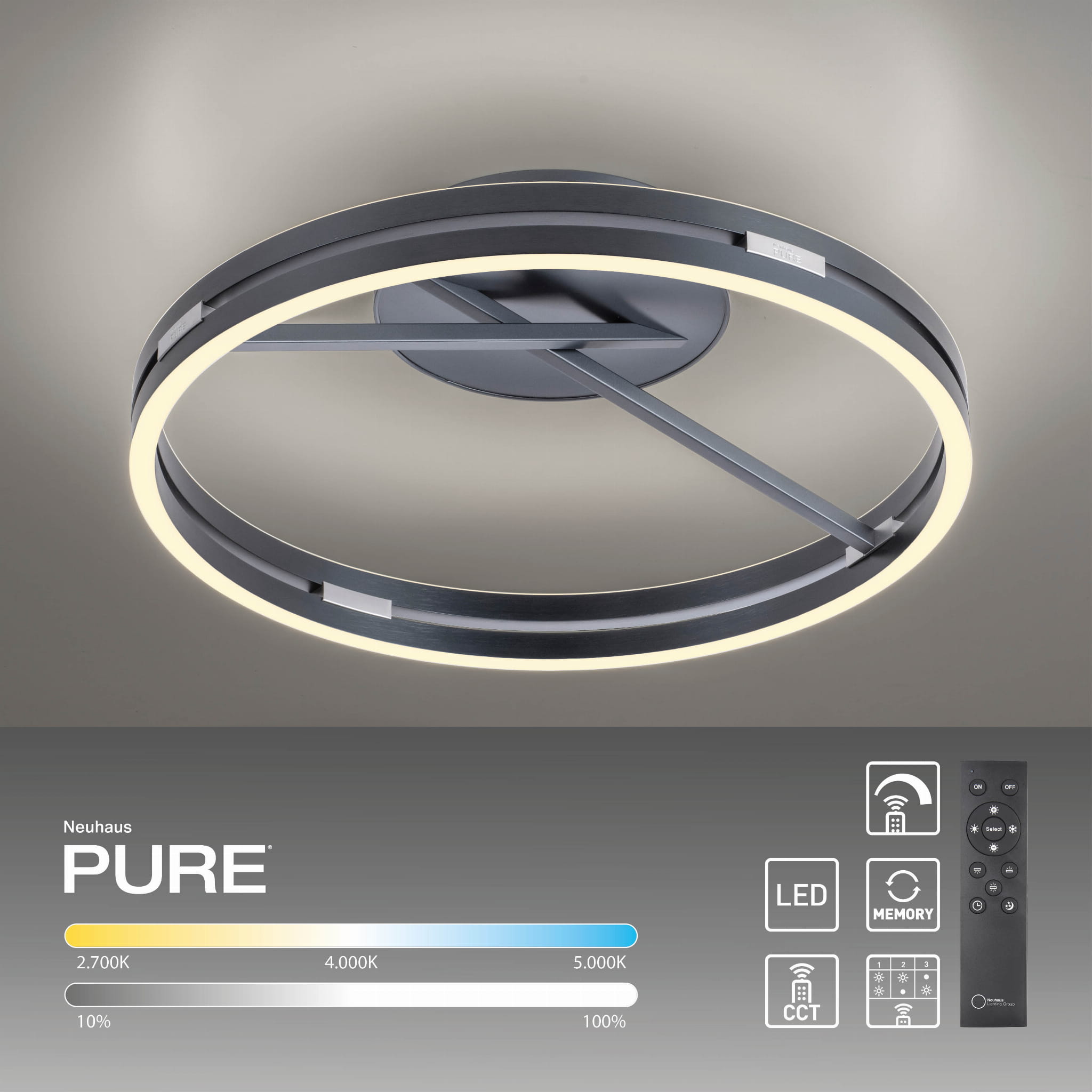 Lampa sufitowa PURE LOOP Szary LED 2700-5000K 6552-15 Paul Neuhause